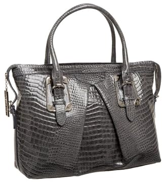 Elegant pleats and silvertone hardware complement the premium glossy crocodile print leather of this gorgeous Casadei tote. You'll find this luxe style to be the perfect accompaniment to so many outfits, from casual chic to career wear. It offers a roomy satin-lined main compartment, accessed through a top zipper and rounded double carrying handles. A footed platform protects the bag when you set it down.